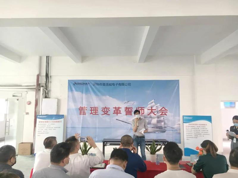 普洛威电子公司董事长张董在项目启动会上致辞表示:“公司9年发展,业绩两年没增长,单价没有优势,必须要变,提升企业增长效益,降低企业运营成本,凝聚团队智慧,完善公司体系,做出高品质的产品,公司成员要不畏艰难,与普洛威一起创造美好的明天。” 随后,总经理张总发言表示:“公司有坚定的变革决心,我们要改行为,变行为,下定决心执行到位。”