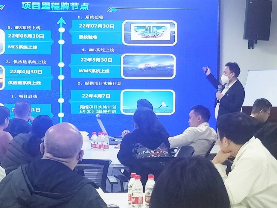 会上,项目老师结合同创依诺发展实际,详细讲解了项目计划实施步骤。表示,在项目启动后,各模块项目老师会按照时间节点先后落地:供应链管理系统、WMS系统、MES系统,并在企业内部培养各系统管理人才,让改善工具能够真正落地产生价值,为公司未来的发展储备人才骨干。