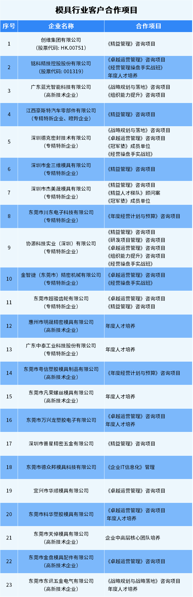 深圳市杰美晟模具有限公司与远大方略开启合作,建立了项目管理、经营目标与预算管理、先算后做模式,打通商业环路,搭建适合公司发展的精益生产管理模式,持续提升生产效率;搭建支撑企业持续发展的人才梯队,保障企业战略高效落地。