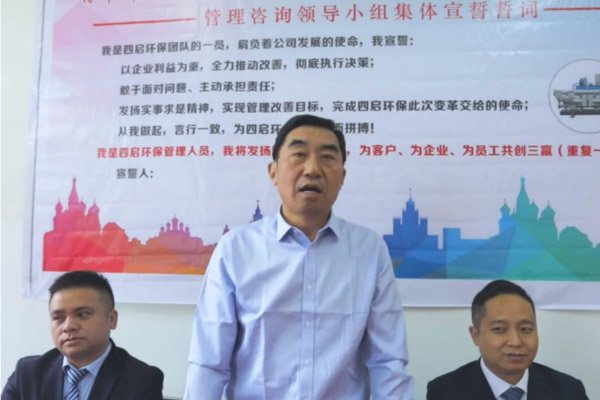 项目启动会上,四启环保的领导发言,表示对于此次改善给予高度期望,四启环保的目标是打造具有核心竞争力的高节能泥浆泵综合解决方案服务能力,成为中国高节能泥浆泵综合解决方案服务平台,希望通过此次改善能够助力四启环保更上一层楼,实现三年内营收超过5亿元,3-5年内实现IPO。同时启动会上,扬州四启环保设备有限公司的领导给远大方略项目组颁发授权书,授权远大方略正式启动四启环保《经营管理系统提升》星空官方站登录入口项目。