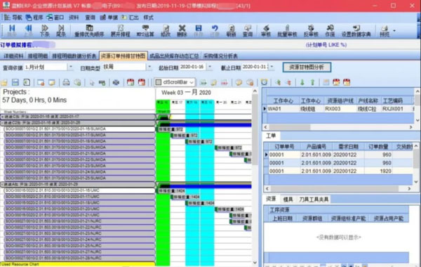 可视化拖拉、依据生产实际实时更新排程、适用资源提醒、模具冲突提醒