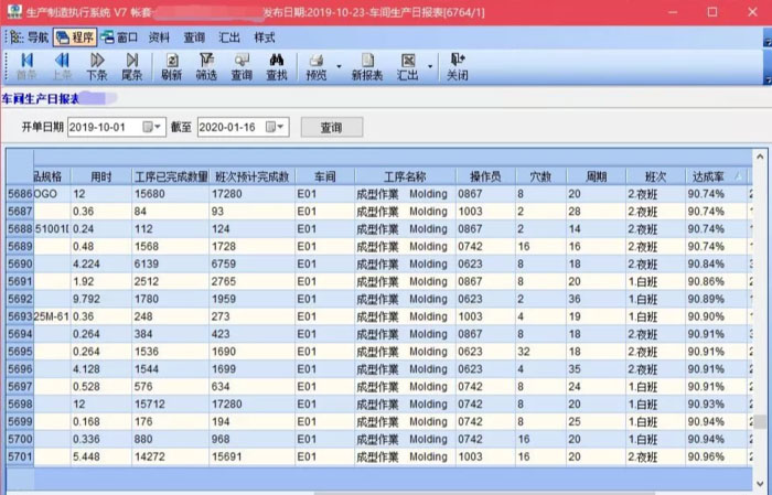 对接台扣利富高ERP系统,订单、工单、模具周期等数据全部从ERP系统中实时读取。