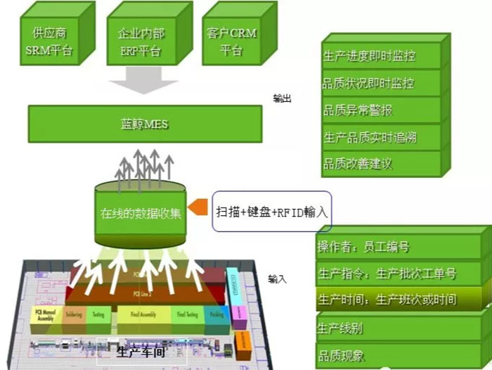 针对制造过程中,每个工序的质量情况,质量部门可于每个批次生产完成后,于系统中输入检验记录。如当发现制造过程中可重大质量问题,可以连接生产广告牌,实时拉响质量警报,便于及时处理,避免出现重大返工情况。