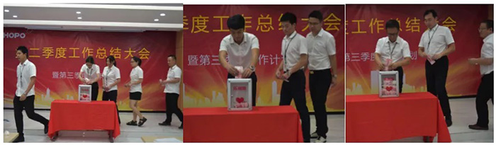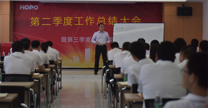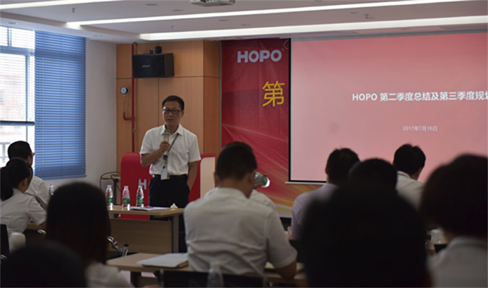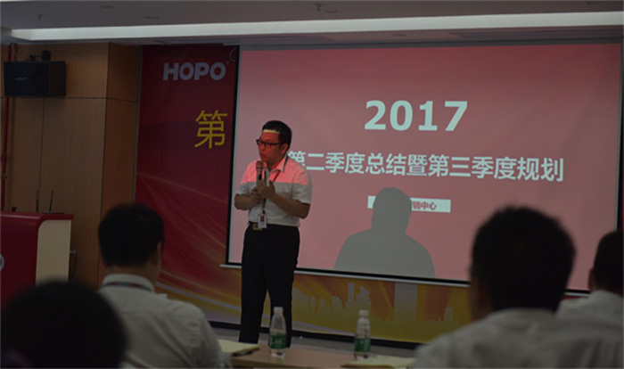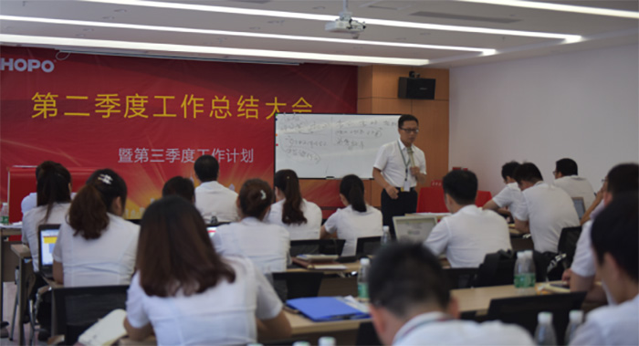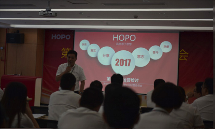 随后,公司董事长针对季度运营情况,从产品、竞争对手、价格、渠道、团队、战略角度对公司上半年的工作进行解剖;阐述目前的成绩与不足,对公司接下来的工作明确战略布局。从整体业绩情况来看,第二季度同比增长30%,没有完成公司的要求目标,对于快速发展的HOPO来说,迎来了发展中的一次低谷,警醒我们全体员工加快步伐,练好内功,是低谷也是蓄势待发的机会。