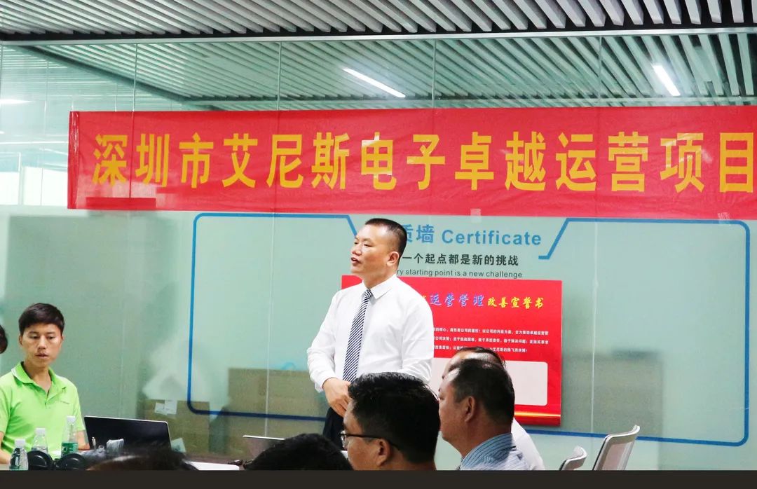 艾尼斯已具备再次腾飞的空间,我们要抓住此次管理提升的契机,各部门必须主动、积极配合老师,必须严格、一丝不苟的完成各项管理变革工作任务。通过大家的共同努力实现企业內部组织标准化管理,将企业的管理规范化、制度化、数据化,使內部管理适应企业的发展要求,共创艾尼斯美好的明天。
