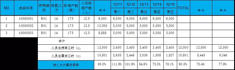 当主计划MPS完成后则可制定相应的组装周计划或制程计划周计划;其周计划须注意: