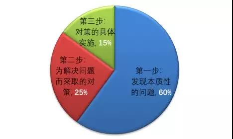 “问题解决”所追求的是,找出问题的根本原因(本质的问题),然后想出解决办法,所以如果发现本质问题,就可以说问题已经解决了60%。解决问题时,希望大家要用流程考虑,用流程考虑的话就不会遗漏。