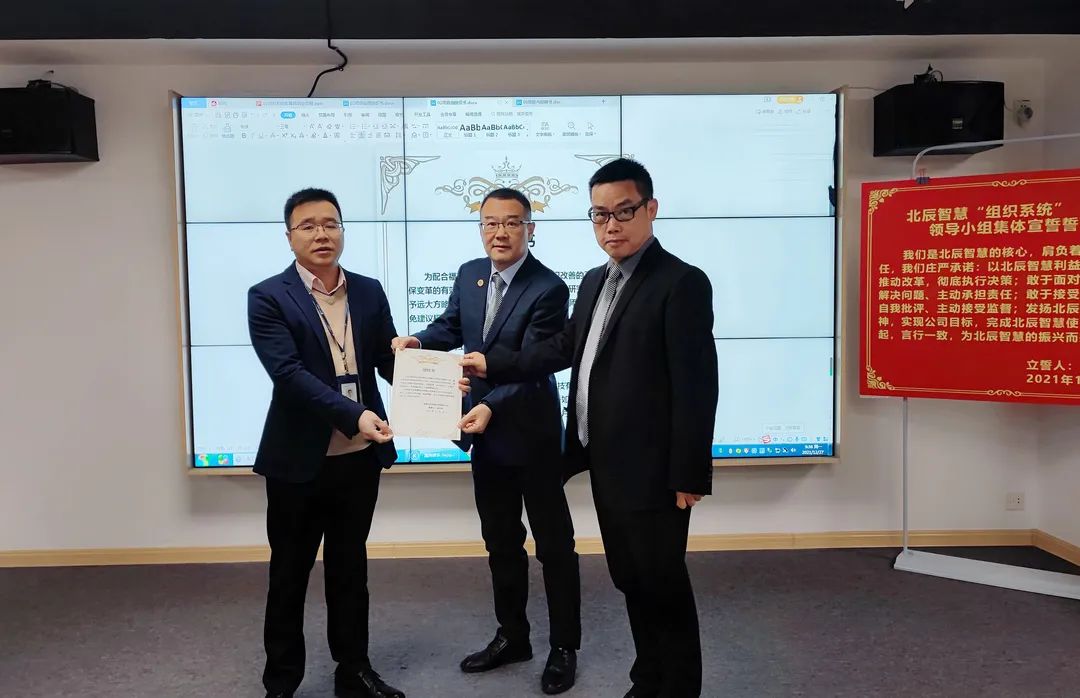 启动会最后,潘总给星空官方站登录入口项目“变革领导小组”颁发了任命书,集体进行了宣誓,大家信心满满,相信此次改善定能给北辰智慧带来质的改变。