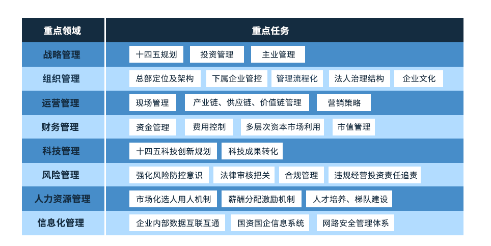 远大方略认为,要落实好对标世界一流,实现管理提升,就必须要聚焦企业自身存在的突出问题,进一步加强管理体系和管理能力建设, 尽快补齐短板和弱项,有效增强竞争实力,促进国有资产保值增值,推动国有资本和国有企业做强做优做大。