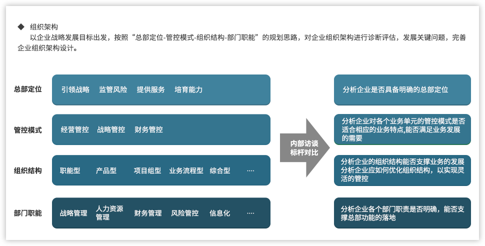 优化国有企业组织架构,强化国有企业内部管控,提升企业管理水平,防范企业内部风险,是强化国有企业竞争力,推进所有企业市场化改革的重要环节,尤其近年来国家加强对金融风险的管控和国有企业债务风险的管理,众多国有企业面临越来越大债务压力,国有企业迫切需要提升自身组织管控能力。