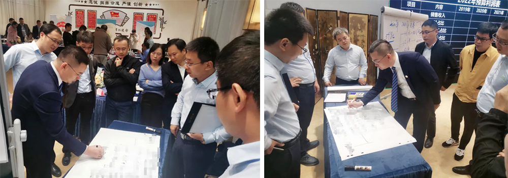 好战略的产生是需要大量分析,总结回顾以前企业经营结果的,在雷老师的引导下,大家进行了2020/2021战略复盘,回顾了联茂集团经营目标整体达成情况,盘点了做得好的地方,分析了不足之处,给出了改善的方法,通过对比,也了解了企业和行业之间的差距,让大家对企业的定位更加清晰。