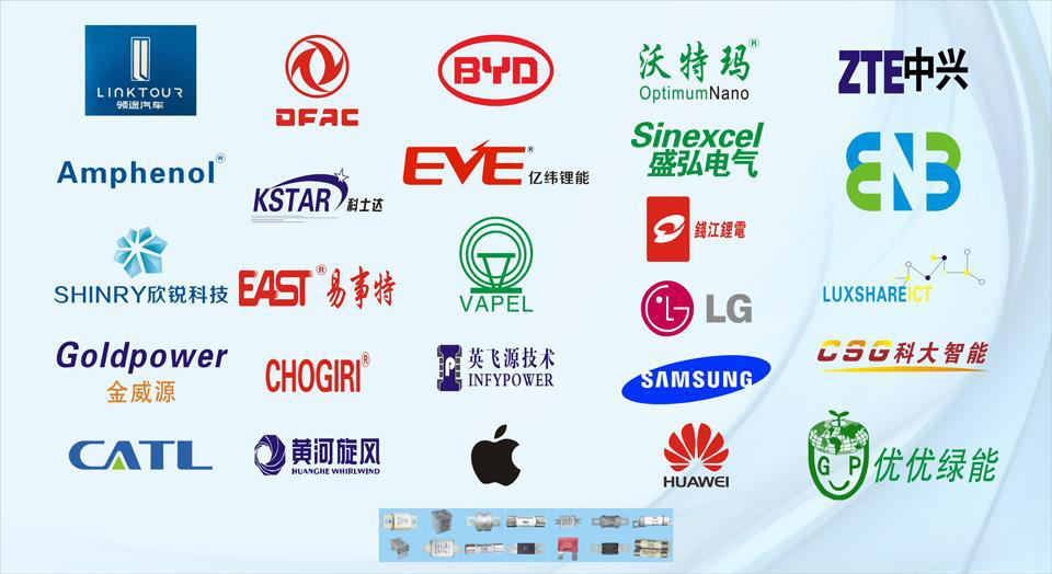 公司产品包括高压汽车熔断器、低压汽车熔断器、储能电池熔断器、电力熔断器、光伏熔断器、充电桩熔断器、5G通讯类熔断器等,广泛应用于新能源汽车,充电桩,太阳能,工业配电柜,储能电柜,UPS电源,5G通讯,家用电器,电源模块,照明电器、安规插头等各种电器设备。