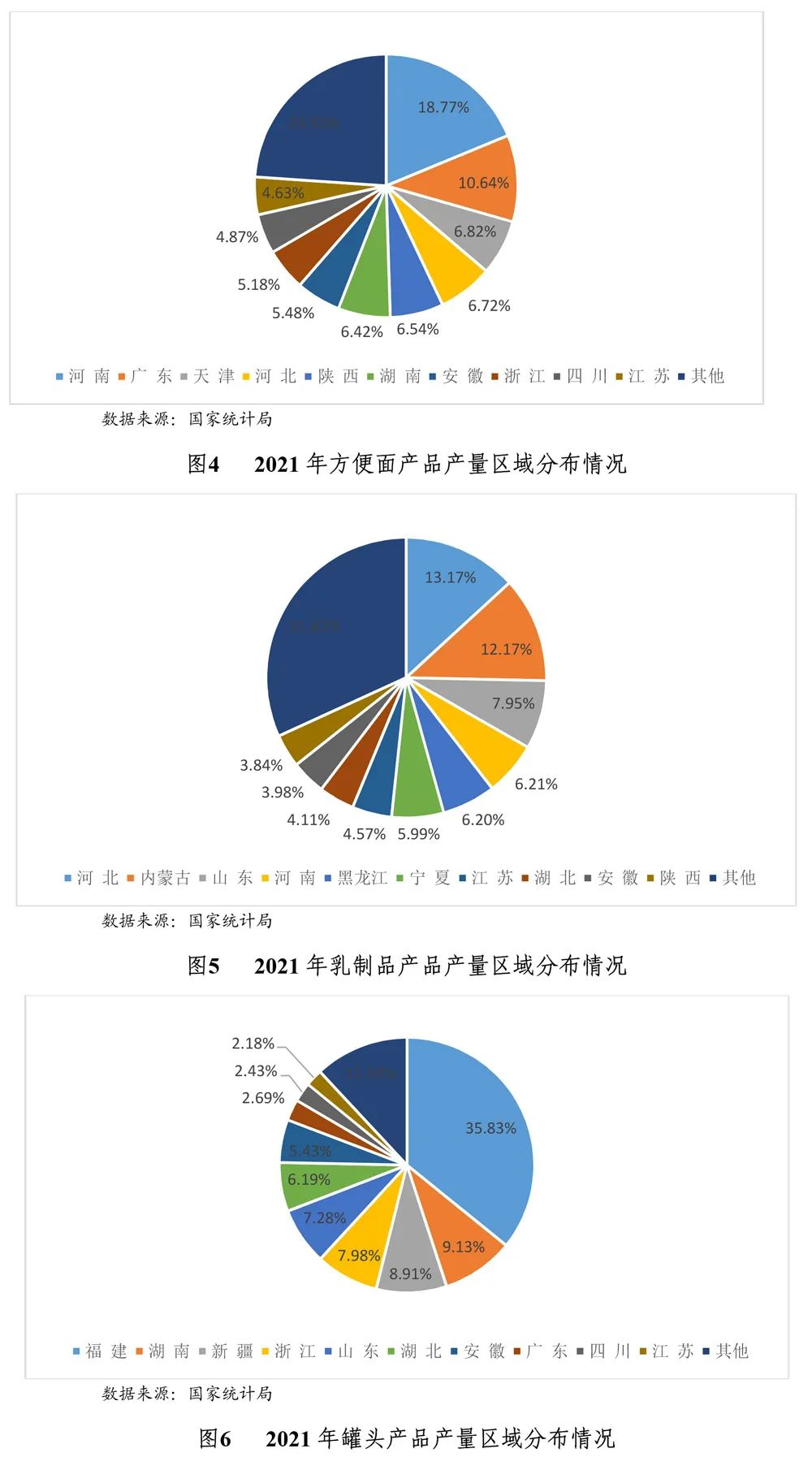 从细分行业来看,糖果主要分布在东南部沿海地区,包括福建、广东两省产量占全国的50%以上。方便面主要集中在河南、广东以及京津冀地区。乳制品主要分布在河北、内蒙、山东三省。罐头主要分布在福建、湖南、新疆三省。