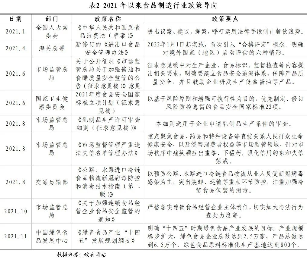 2021年,我国宏观政策效应持续显现为食品制造行业带来积极作用,行业监管政策主要围绕加强食品安全监管和推动产业健康有序地向高质量发展。