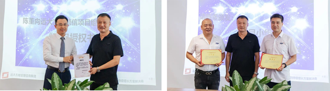 会上,陈董为远大方略项目组颁发了授权书,授予项目组相关管理权力;为项目相关负责人颁发任命书,全力推动变革。