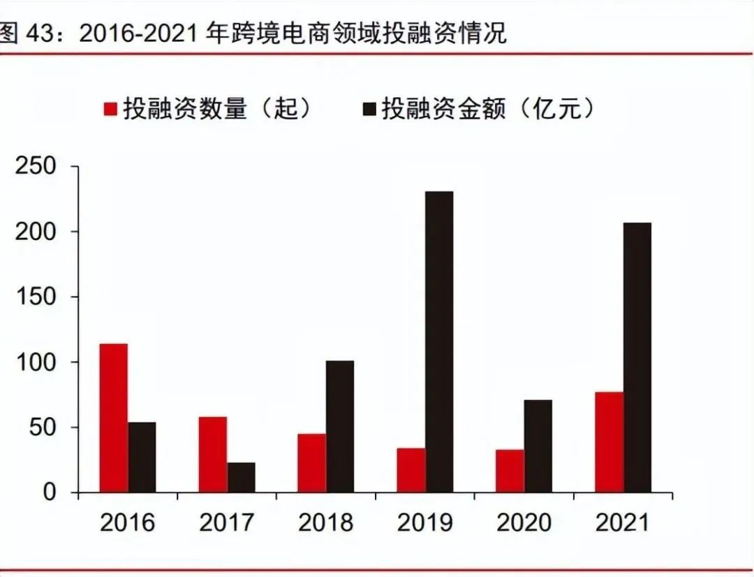 服务生态完备,全链路赋能跨境卖家。随着跨境电商行业整体成熟度和专业度的提升, 以及行业竞争的加剧,对卖家的综合运营能力提出了更高的要求,跨境支付、代运营、营销推广等跨境电商服务商应运而生。根据艾瑞星空官方站登录入口,2021 年跨境电商领域投融资总金额 达 207 亿元,其中服务商领域融资事件/规模占比分别为 65%/34.5%。跨境电商服务商生态的繁荣,有助于增强跨境卖家面向海外市场的竞争力。