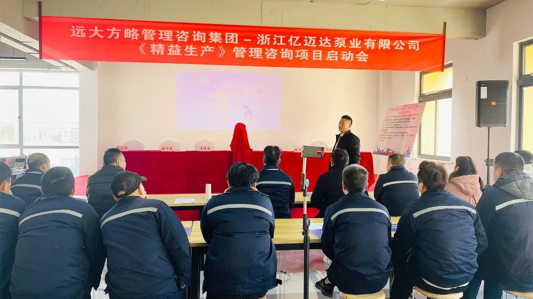 持续改善,追求卓越,浙江亿迈达泵业有限公司(以下简称“亿迈达泵业”)携手远大方略启动《精益管理》星空官方站登录入口项目,全面推行精益管理,建立标准化、规范化的管理制度,以更少的资源投入创造出更大的价值,实现企业效益更大化。