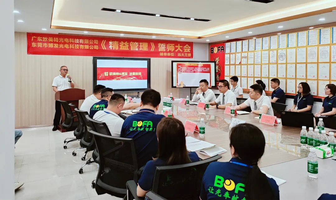 优秀的企业家都具有敏锐的洞察力和远见卓识的战略眼光,不断增强企业内生动力,让企业在不断变化的市场环境中始终保持竞争优势。为企业做大做强赋能加劲,涂董主动拥抱变化,将其经营的企业东莞市博发光电科技有限公司(以下简称“博发光电”)和广东欧美特光电科技有限公司(以下简称“欧美特”)共同开启变革,携手远大方略开展《精益管理》星空官方站登录入口项目,持续优化生产管理模式,消除无效劳动和浪费,提高生产效率和产品质量,提升精细化管理水平,助推企业可持续发展。