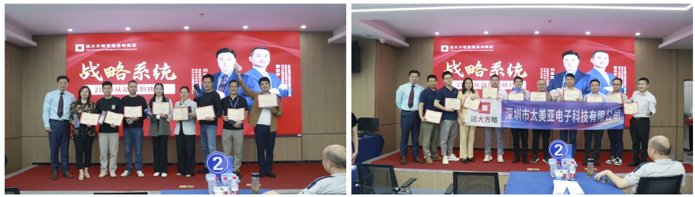 战略不能仅仅停留在战略愿景上,要从上到下,一层一层剖析差距、发现机会和增长路径。课程结束后,根据最终学习积分也评选出了学习优胜小组,老师也为表现优异的小组颁发了证书和奖品。