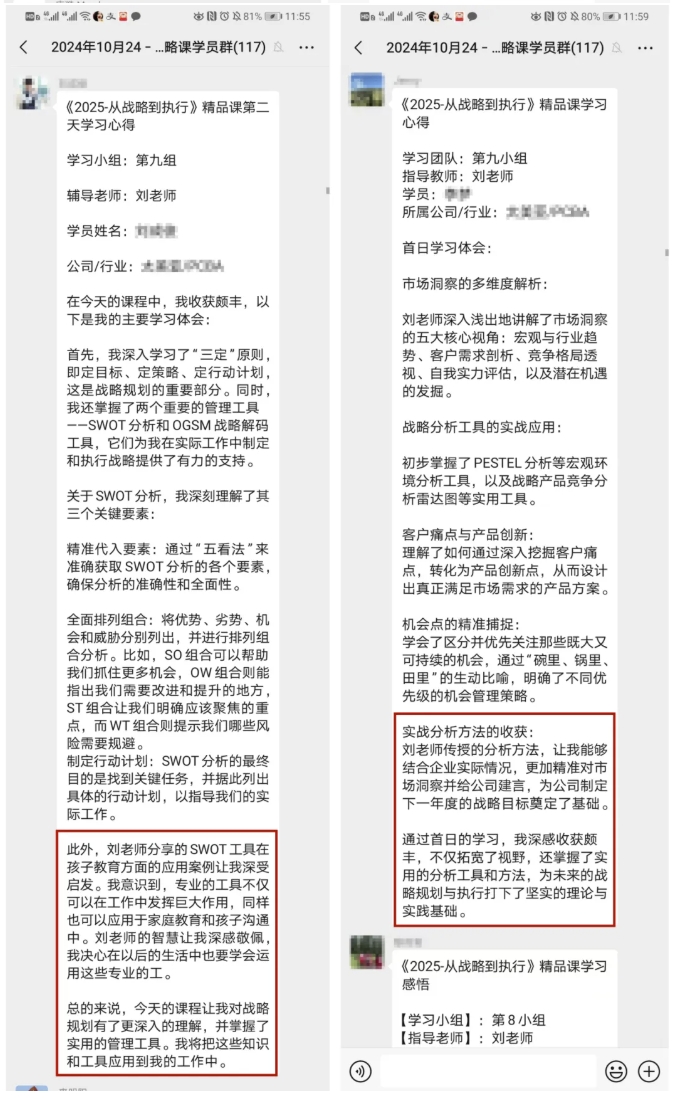 战略是企业业务运行的火车头,有清晰的战略才能确保我们有共同的方向,但所谓知易行难,只有可落地、可执行的战略才是真正的战略。这也是本次课程的一大亮点,重实操,重落地,让每一位学员回到企业都能够制定一套适合企业的战略方案。三天的学习全程高能,课程实用、可落地性强,获得学员一致好评。