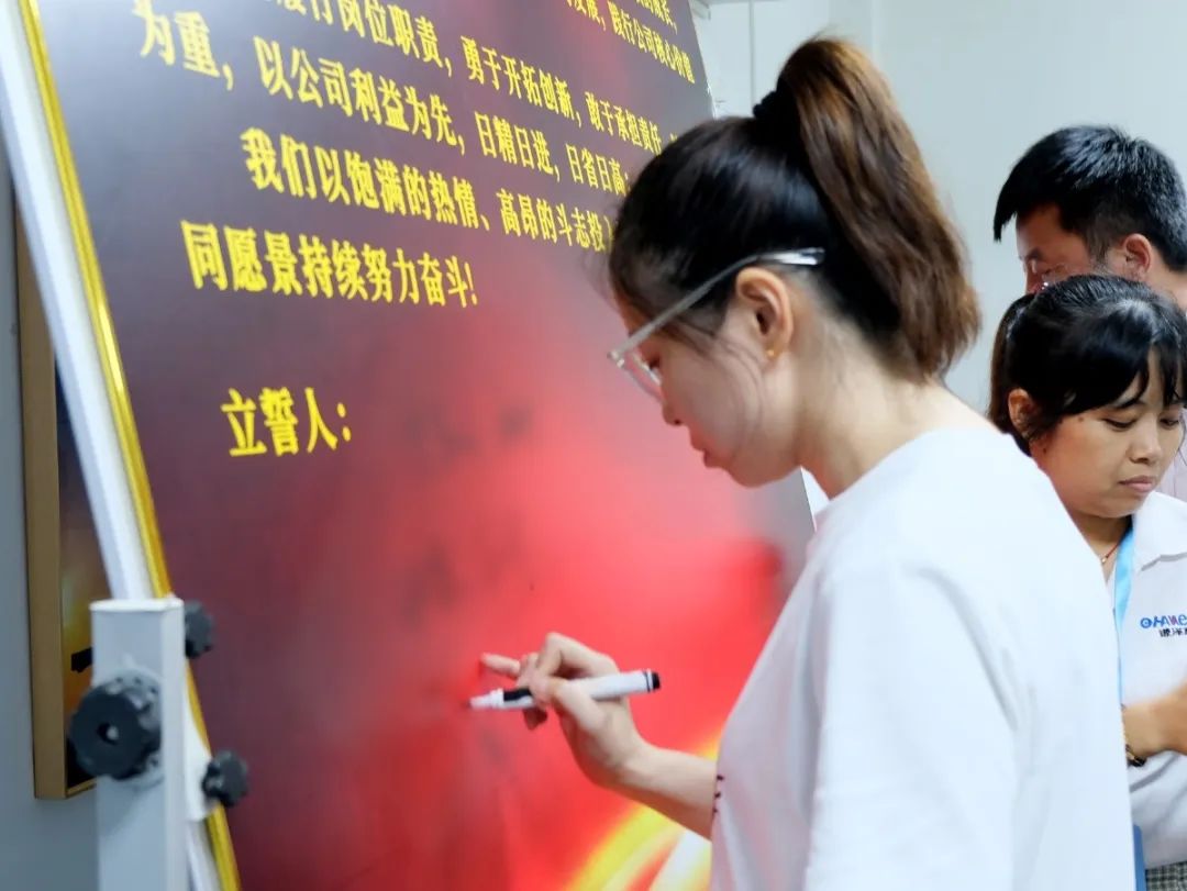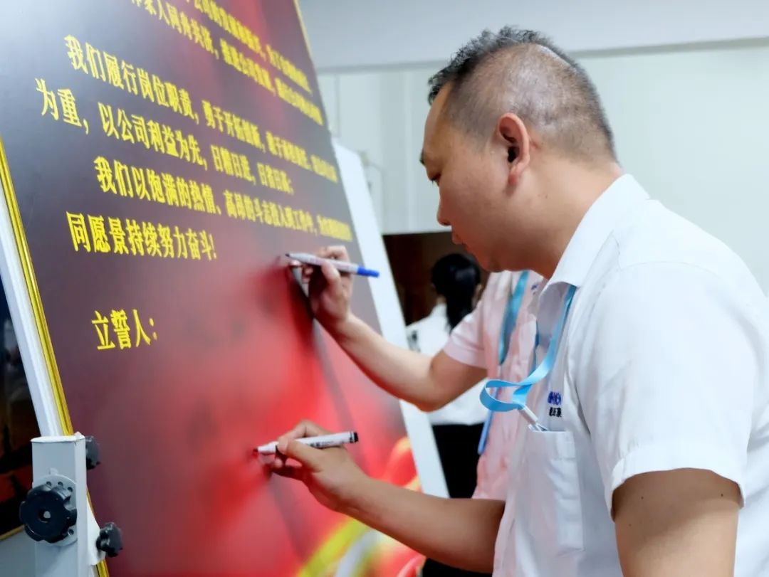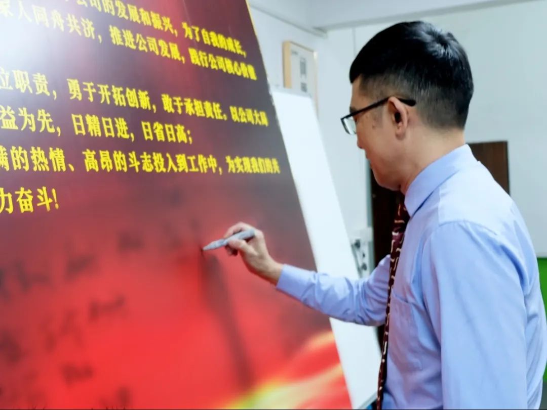 会上,万总为项目老师颁发了授权书和聘书,带领项目关键人员在誓词上签字并集体宣誓,鼓励大家和公司共同成长进步。