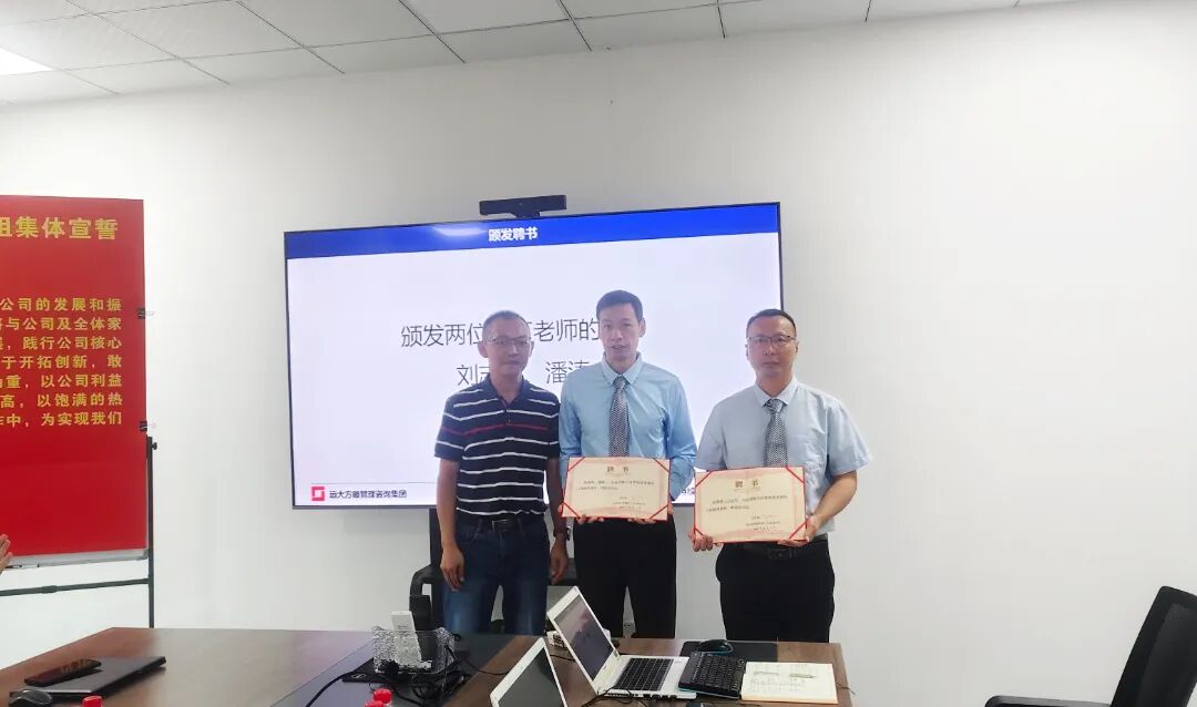 为促进项目的有效落地,明确各岗位职责,强化责任意识,会上陈总为远大方略项目组颁发授权书,为项目组老师颁发了聘书。
