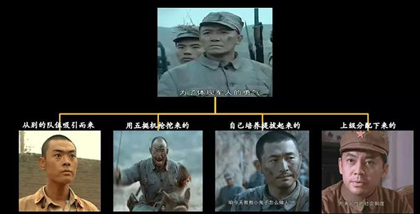 案例:李云龙如何构建核心团队(魏和尚:解救后吸引而来;孙连长:用五挺重机枪从别的队伍挖过来;张营长:自己培养提拔起来,是打出来的;赵政委:上级委派而来。
