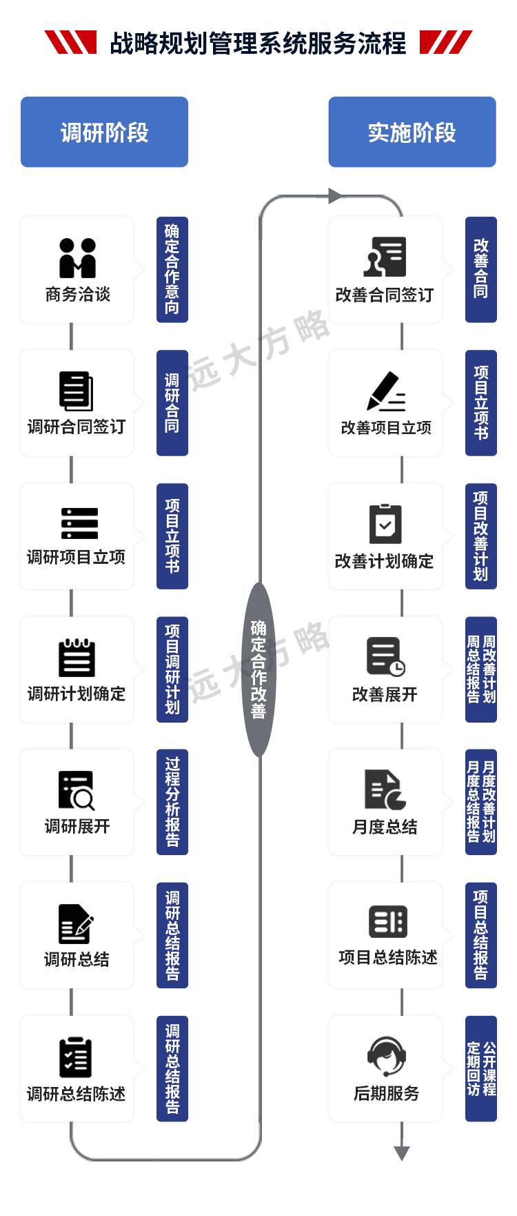 远大方略始终遵循不了解不理解企业的前提下绝不轻易下结论,正式制定改善方案前必须深入到业务一线了解和理解企业的运营情况。