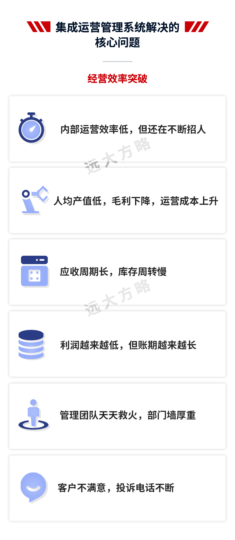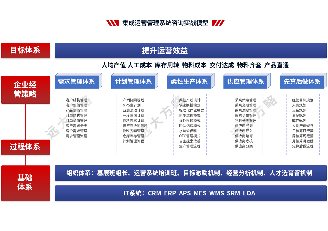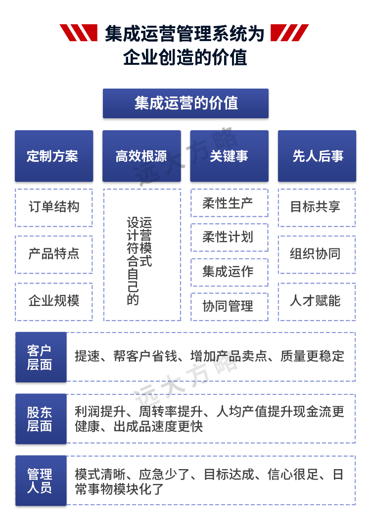 远大方略始终遵循不了解不理解企业的前提下绝不轻易下结论,正式制定改善方案前必须深入到业务一线了解和理解企业的运营情况。