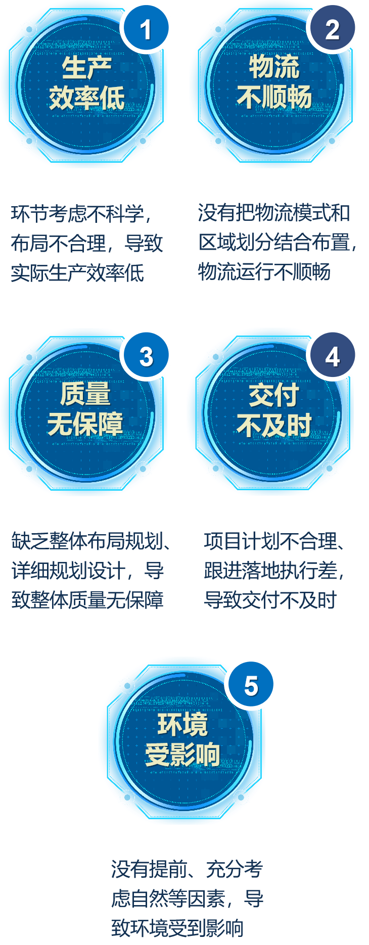 ①自制件全部整合规划,消除园区间长距离搬运;②基本实现园区人车分流;③物流自动化。