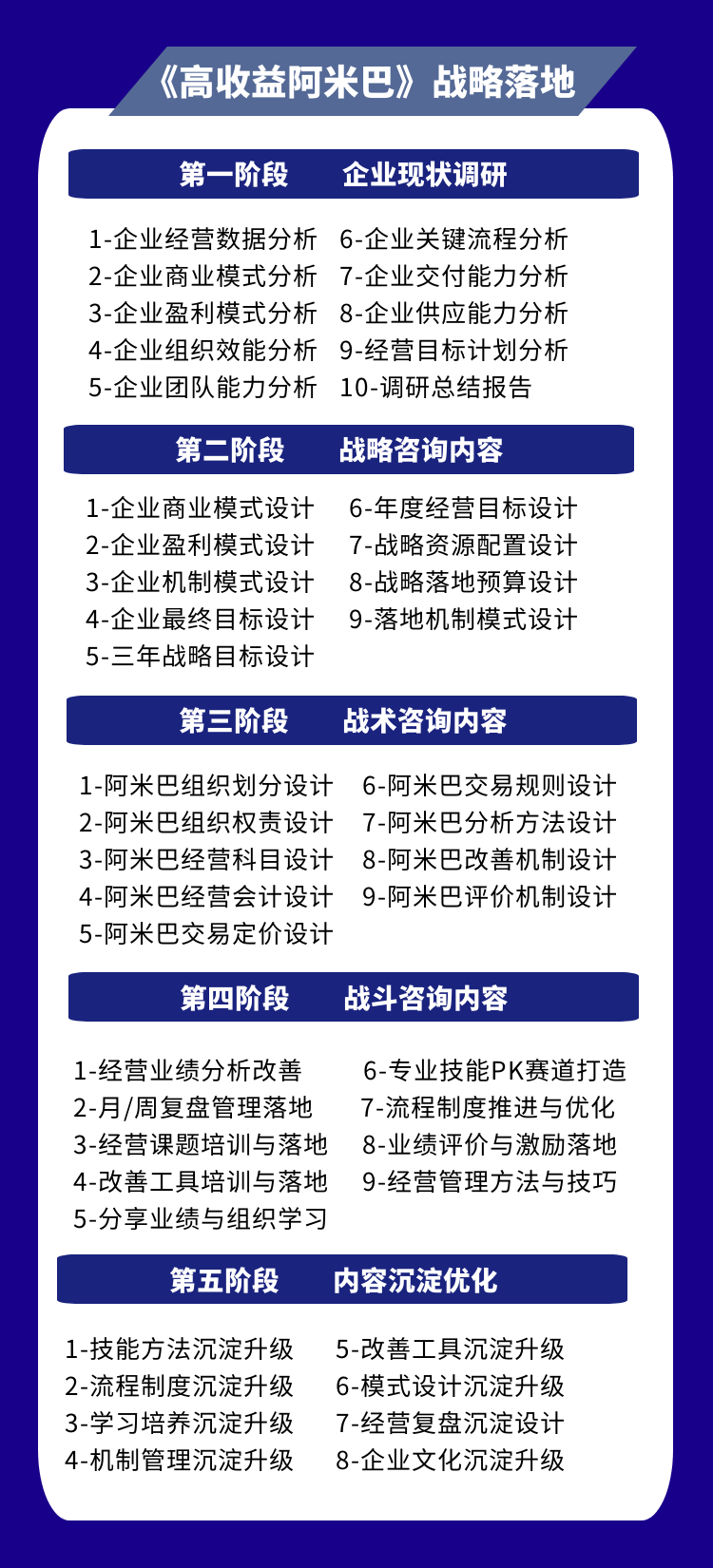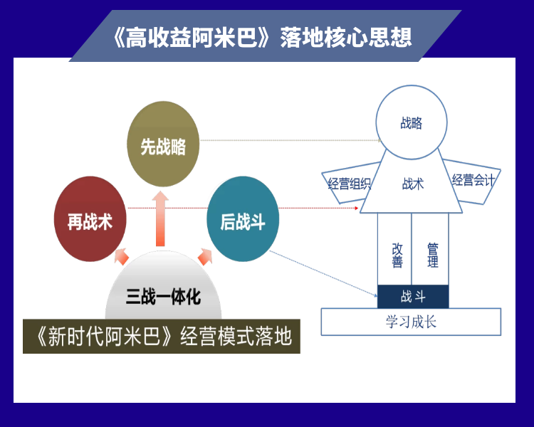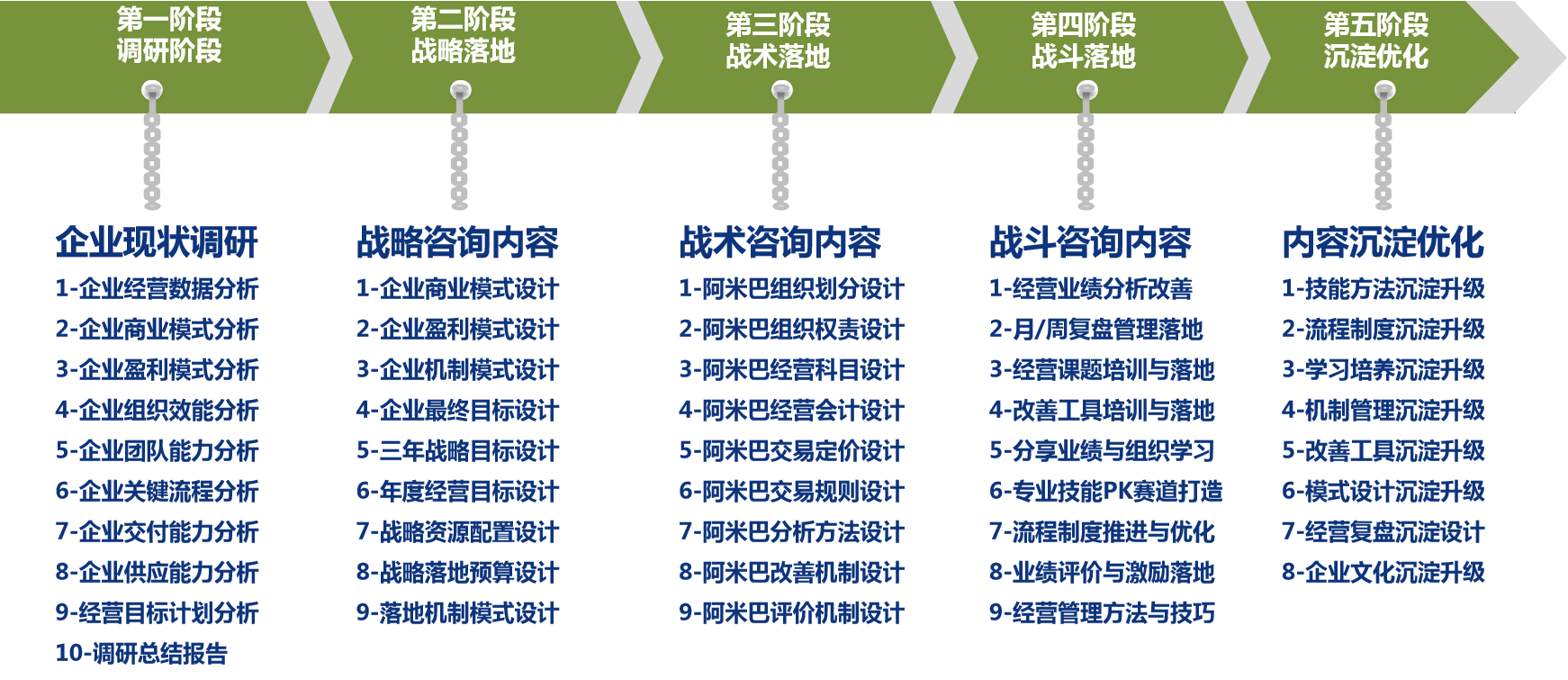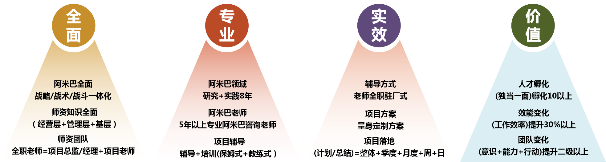 4、数据增长:(1) 公司高层、中层、基本价值观高度统一;(2)公司企业文化清晰明确,提倡什么、禁止什么清楚明了;(3)组织架构调整实施,责、权、利下放至各事业部;(4)事业部实现独立财务核算;(5)事业部内各阿米巴实现独立财务核算;(6) 人才培养机制初步形成;(7) 持续降低成本的自主运营机制初步建立;(8)公司利润率提升5%,净利润提升80%。